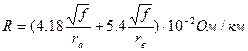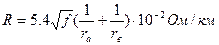 rв – внутренний радиус внешнего проводника в мм. Соответственно сопротивление коаксиальной пары: