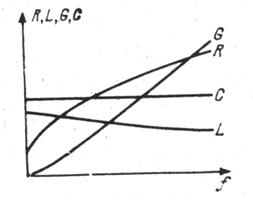 Увеличение R за счет поверхностного эффекта. С увеличением Уменьшение L за счет поверхностного эффекта. и уменьшается емкость кабеля и G. G – увеличивается линейно.