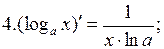 Приведем таблицу производных основных элементарных функций.
