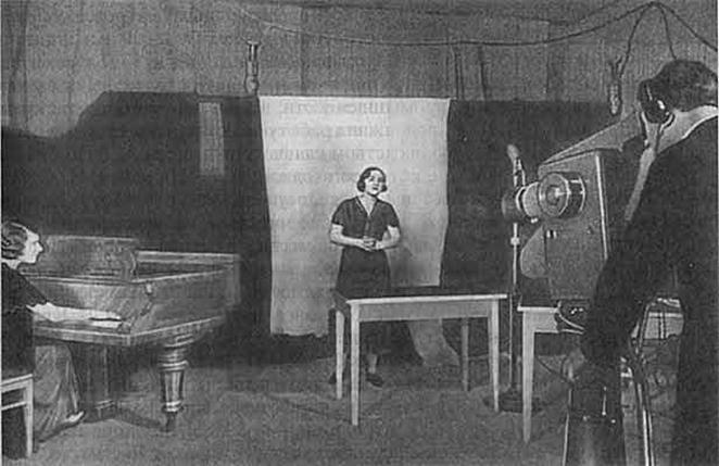 Рис. 11. Первая передача Опытного ленинградского телецентра: В 1935-1936 гг. работа по оборудованию ТВ-центров электронного типа полным ходом велась в Германии, Англии, Франции и других странах. СССР имел соглашение о научно-техническом сотрудничестве с компанией Radio Corporation of America (RCA) и мог, помимо отечественных разработок, использовать телевизионную аппаратуру, созданную на этой фирме. Руководящие органы должны были принять решение, какую из разработок электронного телевидения принять за основу системы телевещания в нашей стране.