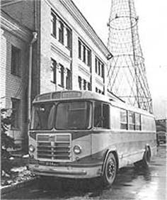 Май 1948 года. В Ленинграде в экспериментальном порядке начала действовать передвижная телевизионная станция (ПТС), которую обслуживали инженеры завода-изготовителя. Они провели первый в нашей стране внестудийный телерепортаж — показ первомайского парада и демонстрации на Дворцовой площади. Это были, в сущности, заводские испытания, трансляция без текстового комментария. Московский телецентр получил передвижную станцию в июне 1949 года. Появление ПТС в советском телевидении значило гораздо больше, чем очередное техническое усовершенствование, — возникла возможность принципиального видоизменения телевизионных программ. 1949 год. В эфир вышла первая, не считая технических экспериментов, внестудийная телевизионная передача в Москве — репортаж о футбольном матче на стадионе «Динамо». В 1933-м году уже делалась подобная попытка, но тогда зрители увидели запись только на другой день после матча.