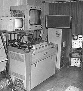 Технический парк советского телевидения Московский телецентр по праву считался одним из наиболее технически совершенных телецентров мира. У подножия знаменитой 150-метровой Шуховской башни, возведенной в 1922 году для радиостанции, были размещены два здания — для передатчика и студии, где находились телекинопроекционный и просмотровый залы, костюмерные комнаты для артистов и помещения для административно-творческого персонала. Приемная сеть состояла из 100 телевизоров, установленных в радиусе до 30 км от передатчика. Полезная площадь павильона (студии) составляла 300 м2. Он был по тем временам хорошо оборудован световыми приборами с централизованным управлением, бесшумной вентиляцией, превосходной системой акустики (по мнению многих специалистов, по своим акустическим качествам этот павильон и по сей день не имеет себе равных). Телеаппаратура размещалась в четырех комнатах, одна из которых и была павильоном. Телевизионная передача шла по двум каналам: по одному — изображение, по другому — звук, а так как не у всех зрителей был второй приемник (для звуковой части телепередачи), на экране время от времени, как в «немом» кино, давались пояснительные надписи. Павильон был отделен от аппаратной застекленным окном, а дисковый передатчик (камера) находился в аппаратной, перед стеклом. Из-за малых размеров экрана передача велась почти на одних только крупных планах. Еще один телепередатчик служил для показа кинофильмов. Студия была оснащена тремя телекамерами, установленными на неподвижных штативах, которые скоро заменили на подвижные. При помощи коммутирующего устройства (пульта) посылались в эфир кадры, получаемые с любой из камер. Наличие нескольких камер в телевизионной студии и свобода их передвижения — все это открыло новые перспективы и позволило приступить к покорению тех творческих вершин, которые уже освоило кино. Заметим, что все оборудование нового телецентра в Москве было американским, созданным под руководством В. К. Зворыкина. Мебель изготовили по специальным эскизам одной из мастерских Академии художеств СССР. Первый электронный телеприемник («ТК-1») представлял собой довольно громоздкую тумбу, в которой кинескоп располагался вертикально. Такие телевизоры были установлены в рабочих клубах и красных уголках, во дворцах культуры, в Политехническом музее и других общественных учреждениях. В 1949 году промышленность начала массовый выпуск дешевого, но весьма надежного телевизора «КВН-49» с экраном 10,5×14 см. Название было составлено из первых букв фамилий его конструкторов — Кенигсон, Варшавский, Николаевский. Впоследствии эта аббревиатура превратилась в название популярной телепрограммы и расшифровывалась как «Клуб веселых и находчивых». Экран телевизора был настолько маленьким, что многие приспособились смотреть его с лупой или линзой, заполняемой дистиллированной водой. Купить его было очень сложно. В магазинах велись очереди, где приходилось отмечаться по определенным дням. Позже появилась более современная модель — «Старт-3» с радиоприемником УКВ-диапазона. Старожилом из всех отечественных телевизионных приемников оказался «Рубин 711».