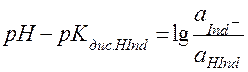 2.Если 3.Если Из уравнения (41) после логарифмирования и перемены знаков можно прийти к выражению для рН в состоянии равновесия: