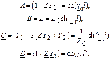 α0 – коэффициент затухания волны; β0 – коэффициент фазы; r0 – справочное активное сопротивление линии, Ом/км; х0 - справочное реактивное (индуктивное) сопротивление линии, Ом/км; b0 – справочная реактивная проводимость линии, См/км; g0 – активная проводимость линии, Ом/км; g0 = b0 tgδ; tgδ – тангенс диэлектрических потерь (принять 0,5%).