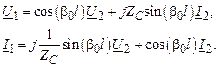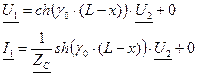 Так как ток I2 =0, то система уравнений длинной линии примет вид