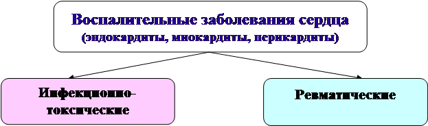 В этиологии основную роль отводят (бета-гемолитическому стрептококку группы А: заболевание обычно возникает через 1 - 4 нед после ангины, скарлатины или других инфекций, связанных с этим возбудителем. В патогенезебольшую роль отводят механизму перекрестно реагирующих антигенов и антител: антистрептококковые антитела могут реагировать с антигенами сердца и других тканей вследствие общности их некоторых антигенов. Возникает процесс аутоиммунизации, приводящий к дезорганизации соединительной ткани, прежде всего в сосудах и сердце. Клинико-морфологические формы ревматизма. Выделяют 4 формы ревматизма: кардиоваскулярную, полиартритическую, нодозную и церебральную. I. Кардиоваскулярная форма. • Встречается наиболее часто. • Характерно поражение сердца и сосудов. А. Поражения сердца. • Эндокардит, миокардит и перикардит. • Поражение всех трех оболочек сердца называют ревматическим панкардитом. • Поражение эндокарда и миокарда называют кардитом.