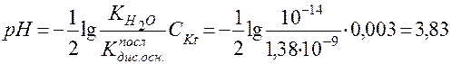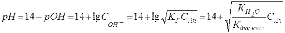 Следовательно, гидролиз соли, образованной сильным основанием и слабой кислотой, идет по аниону и приводит к подщелачиванию раствора. рН среды вычисляется по формуле: где