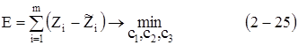 Коэффициенты Cj по методу наименьших квадратов находятся минимизацией суммы квадратов отклонений: