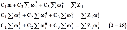 где Zi - экспериментальная величина. Если в качестве Zi используются значения Ui, то искомые коэффициенты соответствуют: в0 = С1 в2 = -С2 в4 = С3 (2-26) Если в качестве Zi используются значения Vi/w, то получаем: в1 = С1 в3 = -С2 в5 = С2