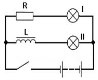 Явление самоиндукции играет очень важную роль в электротехнике и радиотехнике. Индуктивность цепи оказывает существенное влияние на прохождение по цепи переменного электрического тока. Если через катушку протекает переменный ток, то меняется и магнитный поток, пронизывающий катушку. Поэтому возникает ЭДС индукции в той же самой катушке, по которой идёт переменный ток. Это явление называют самоиндукцией. При самоиндукции проводящий контур выполняет две функции: по нему протекает ток, вызывающий индукцию, и в нём же появляется ЭДС самоиндукции Это приводит к тому, что при замыкании цепи, содержащей источник постоянной ЭДС, определённое значение силы тока устанавливается не сразу, а постепенно с течением времени. С другой стороны, при отключении источника ток в замкнутых контурах прекращается не мгновенно. Возникающая при этом ЭДС самоиндукции может превышать ЭДС источника, так как изменение тока и его магнитного поля происходит очень быстро. Явление самоиндукции можно наблюдать на простых опытах. На рис.10.5а показана схема параллельного соединения двух одинаковых ламп. Одну из них подключают к источнику через резистор R, а другую - последовательно с катушкой L с железным сердечником.