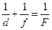 а в случае мнимого прямого изображения, получаемого в вогнутой линзе, формула линзы (рис.11.14в) имеет вид: