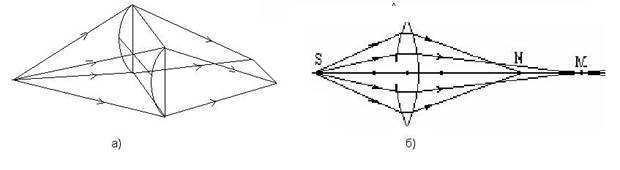 Рис. 11.19. К объяснению возникновения астигматизма (а) и сферической аберрации (б).