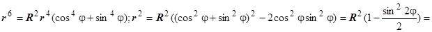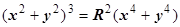 Решение. Первая поверхность - сфера, вторая - цилиндрическая - с образующими, параллельными оси Oz (в уравнении нет z в явной форме). Построить в плоскости Oxy кривую шестого порядка, заданную уравнением , в декартовой системе координат невозможно, можно только сказать, что она симметрична относительно осей (чётные степени) и точка О (0,0) принадлежит этой кривой. Пробуем перейти к полярным координатам.