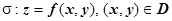 16.1.7.3. Вычисление площади поверхности. Пусть в пространстве задана кусочно-гладкая поверхность , однозначно проектирующаяся в область D на плоскости Оху. Пусть эта поверхность задаётся уравнением . Тогда площадь этой поверхности выражается формулой