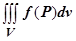 Если существует предел последовательности интегральных сумм при , не зависящий ни от способа разбиения области V на подобласти , ни от выбора точек , то функция называется интегрируемой по области V, а значение этого предела называется тройным интегралом от функции по области V и обозначается .