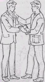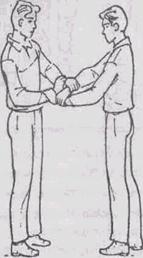 Транспортировка пострадавшего на «замке» из трех рук (рис. 19.6.) и на «замке» из четырех рук (рис. 19.7.). Такой способ имеет отрицательные стороны (двигаться проходится синхронно и боком), а поэтому применяется для транспортировки на небольшое расстояние. Способ транспортировки пострадавшего «друг за другом» (рис.19.8) более предпочтителен, чем предыдущие два способа.