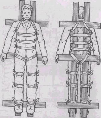Рис. 19.11. Носилки из подручных средств для транспортировки пострадавших с переломом позвоночника с полной фиксацией пострадавшего