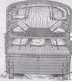 Для быстрой доставки пораженных в лечебные учреждения или при транспортировке их на значительные расстояния используется специальный медицинский или обычный транспорт. Автотранспорт яляется в современных условиях одним из основных средств эвакуации пораженных. Из-за недостатка специального автотранспорта здравоохранение использует транспорт народного хозяйства с проведением простейших приспособительных мероприятий и в первую очередь для эвакуации тяжелопораженных (оборудование универсальным санитарным приспособлением для установки носилок – УСП-Г, добавление в кузов автомобиля балласта, смягчающего тряскость автомобиля, укрытие кузовов грузовых автомобилей тентами, обеспечение транспорта подстилочным материалом одеялами и др.) (рис. 19.12.). Наиболее удобными для эвакуации пораженных являются автобусы, оснащенные типовым санитарным оборудованием (ТСО) для установки носилок (рис. 19.13.). На каждый автобус предусматривается один соправождающий спасатель. Определенные преимущества перед автомобильным транспортом наряду с железнодорожным имеет также и речной (морской транспорт (товарно-пассажирские и грузовые суда различного тоннажа). Из воздушных средств для эвакуации пораженных могут быть использованы самолеты гражданской авиации: АН-2, ЯК-40 и др.