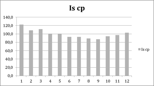 Пример расчета индекса сезонности на месячных данных потребления чего-то там.