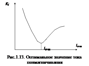 Повышение чувствительности определяется тем, что малым постоянным полям соответствуют большие, чем при отсутствии значения остаточной намагниченности. Улучшение линейности определяется спрямлением характеристик намагничивания. При этом существует некоторое критическое значение , превышение которого уже не сказывается на Brs (рис.1.12, в).