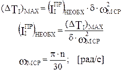 Для того чтобы удерживать колебания угловой скорости wм в заданных пределах, определяемых коэффициентом неравномерности d, первая группа звеньев должна иметь 2.6.3 Вывод формулы для определения Изменение wм от wм_max до wм_min приводит к изменению кинетической энергии первой группы звеньев (ΔТI), которое равно: