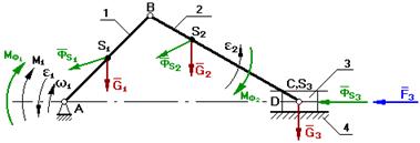 §2.7 Определение реакций в кинематических парах рычажных механизмов без учета трения.