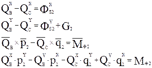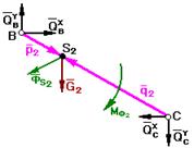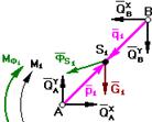 Задачу начинают решать с того звена, к которому приложена известная сила или момент. Кроме того, введем понятие входной шарнир (проекции реакции Q на оси х и у положительны) и выходной шарнир (проекции реакции Q на оси - отрицательны). Расстояние от входного шарнира до центра масс звена – р, а расстояние от выходного шарнира до центра масс звена – q.