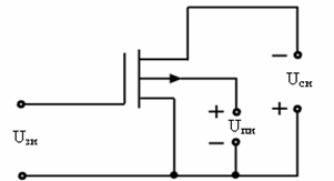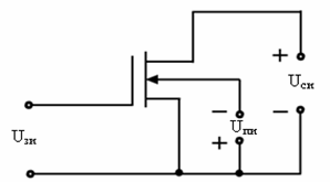 Выходные характеристики МДП-транзисторов показаны на рисунке 4.12. На выходные ВАХ существенное влияние оказывают изменения в структуре канала, возникающие с ростом напряжения на стоке. При UИ=UС=0 электрическое поле в диэлектрике и полупроводнике будет однородным и толщина канала будет одинаковой от истока до стока. Если напряжение UСИ>0 и не очень велико, то канал ведет себя как обычное сопротивление. Ток стока увеличивается пропорционально напряжению стока. Эту область ВАХ называют линейной областью работы транзистора. С ростом напряжения UСИ будут увеличиваться ток стока и потенциал поверхности полупроводника в направлении от истока к стоку. Вследствие этого разность потенциалов между затвором и поверхностью полупроводника будет уменьшаться в направлении к стоку.