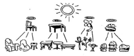 У “Міфі про печеру” Платон уподібнює відношення між речами, ідеями та ідеєю Блага відношенню між тінями на стіні печери, речами, від яких падають ці тіні, та Сонцем. Чуттєві речі – це ніби тіні від ідей, а ідея Блага – ніби Сонце у світі ідей. Ідея Блага – це те, у світлі чого ми можемо пізнати усі інші ідеї – подібно до того, як ми бачимо усі речі у світлі Сонця.