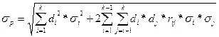 kp -- доходность j-го актива; dj- доля j-го актива в портфеле; n- число активов в портфеле 6.3.3.2. Мерой риска портфеля может служить показатель среднего квадратичного отклонения. Среднее квадратичное отклонение портфеля определяется по формуле: