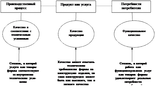 Услуги или товары фирмы могут соответствовать внутренним техническим условиям, сама конструкция может быть высокого качества, но услуга или товар могут не подходить для удовлетворения конкретных нужд потребителей. Пример - электронная мышеловка, но нужна простая недорогая мышеловка => с точки зрения функционального качества рейтинг фирмы окажется низким. Количественной характеристикой свойств изделий и услуг являются показатели качества Показатели качества могут быть: 1) единичными (характеризуемыми только одним из свойств продукции) и комплексными (несколькими свойствами); 2) натуральными, стоимостными и относительными; 3) эксплуатационными (отражающий свойства, связанные с удовлетворением потребностей в соответствии с назначением изделий) и производственно-технологическими (показывающими степень стандартизации, унификации, трудоемкость, материалоемкость, себестоимость). Контроль качества Он имеет две стороны: коммерческую и юридическую. Коммерческая ответственность заключается в повышении качества до уровня, отвечающего ожиданиям потребителей. Юридическая ответственность - есть обязанность, которую несут компании перед своими потребителями. Контроль качества должен осуществляться на всех стадиях производства: а) проверка сырья и материалов; б) контроль производственных процессов; в) проверка готовой продукции. Оценка качества может проводиться двумя методами: 1. Дифференциальный метод, при котором определяется относительный показатель качества «К». К = Р/Р6,где Р - значение показателя качества изделия; Рб - базовое значение показателя качества 2. Комплексный метод, при котором устанавливается несколько показателей качества продукции. При этом а) среднеарифметическая величина Ка: Ка = mi- коэффициент весомости i-ro показателя; Ki - оценка i-ro показателя, б) Среднегеометрическая величина Кг: Кг = Для определения количества показателей качества «п» и коэффициентов весомости «mi» обычно применяется экспертная оценка. К числу таких показателей обычно относятся: надежность, долговечность, показатели назначения, технологичность, унификация, эстетичность и ряд других. Управление качеством продукции базируется на принятии мер воздействия на процесс производства с целью достижения и поддержания заданного уровня качества. Основой управления качеством является стандартизация. Существуют государственные, отраслевые стандарты и стандарты предприятий. Объектами государственной стандартизации является конкретная продукция, технология, нормы, правила, требования, методы, термины, предназначенные для применения в разных отраслях. Отраслевые стандарты распространяются на объекты, не являющиеся объектом государственной стандартизации. Они учитывают особенности отрасли и действуют в основном на технологическую оснастку, типовые технологические процессы, детали, отдельные виды материалов. Стандарты предприятия охватывают деятельность предприятия, включая научные исследования, подготовку производства новых изделий, производственный процесс, сферу эксплуатации. Организация технического контроля качества Одной из функций системы управления качеством является технический контроль (ТК). Содержание ТК - это оценка качества выпускаемой продукции, и выработка сигналов по устранению отклонений от установленных нор