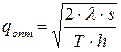 Рис.18.1. График циклов изменения запасов в модели Уилсона (без дефицита) Входные параметры модели Уилсона 1) s – затраты на осуществление заказа, включающие оформление и доставку заказа и доставку товара (руб.); 2) 3) h – ежедневная стоимость хранения единицы товара (руб./ ед.тов.*ед.вр.); 4) l – спрос на товар за временной промежуток T (ед.тов.). Выходные параметры модели Уилсона 1) q – размер заказа (ед.тов.); 2) t – период поставки, т.е. время между подачами заказа или между поставками (ед.вр.); 3) 4) F – общие затраты на управление запасами (руб.). Несложно вывести следующие формулы [1, с.128-129]: 1. Оптимальный размер заказываемой партии