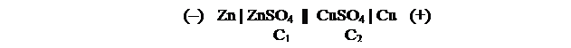 ЭДС всякого работающего элемента является величиной существенно положительной. ЭДС гальванического элемента, т.е. наибольшая разность потенциалов между электродами его равна алгебраической сумме отдельных разностей (скачков) потенциала, существующих на поверхностях раздела между различными фазами, образующими данный элемент. Гальваническая цепь записываем следующим образом: