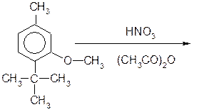 Мускус амбровый В г. Калуге использовали реактор емкостью 500 м3, снабженный змеевиками для охлаждения и пропеллерной мешалкой. Уксусный ангидрид подавали при температуре минус 5°С, к нему добавляли HNO3 при температуре выше 0°С. Нитрующую смесь охлаждали до минус 8°С и в течении четырех часов дозировали к ней при температуре не выше минус 5°С раствор исходного углеводорода в уксусном ангидриде. После окончания слива массу выдерживали при температуре 0°С. Авария началась с отрыва крышки аппарата под воздействием адиабатического расширения образовавшихся газов. Затем был второй взрыв. Разрушилось оборудование и часть здания. При расследовании комиссией не удалось выявить точную причину аварии. Заключение комиссии: образование газов и паров, высокое давление из-за скачка температуры, мощность вторичного взрыва складывалась из взрыва смеси уксусного ангидрида с азотной кислотой и паров мускуса амбрового. Аналогичные аварии на стадии нитрования из-за неквалифицированного персонала случались на многих химических предприятиях. В конце 80-х – начале 90-х г.г. на заводах по получению нитросоединений вменили отделы по безопасности производства, снабдили их соответствующей литературой.