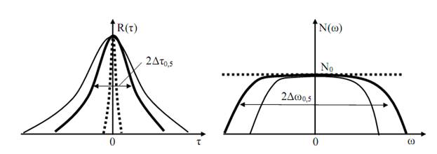 Для оценки процесса с неопределенными временными параметрами применяют понятие интервала корреляции 2Δτ 0.5 , определяемый по половинному уровню корреляции относительно ее максимального значения. При этом связь с шириной энергетического спектра определяется как