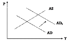 Критика классической экономической науки. Кейнс начал с ревизии классической экономической науки. По его мнению, основой классической теории служат: 1) количественная теория денег; 2) закон Сэя; 3) утверждение о дихотомии (разделении) номинального и реального секторов экономики. Но, по Кейнсу, количественная теория денег не могла справиться с двумя проблемами: во-первых, не могла объяснить колебания выпуска (она объясняла только уровень цен); во-вторых, количественная теория денег не вязалась с фактом негибкости цен (поэтому Кейнс стремился создать модель национального дохода, в которой приспособление к «шокам» происходит через изменения количеств выпуска и занятости, а не через колебания цен). Кейнс отверг «закон рынков» Сэя. По мнению Кейнса, в денежной экономике продавец не обязательно сразу же становится покупателем, он может сберегать, уменьшая одновременно совокупный спрос. Недостаток спроса, в свою очередь, может вызвать падение уровня совокупного дохода и рост безработицы. Поэтому совокупный доход больше зависит от факторов спроса (предполагаемых расходов на потребление и предполагаемых расходов на инвестиции), чем от факторов предложения (размеров применяемого труда и капитала и их производительности). В теории Кейнса они получают название «эффективного спроса» (сумма потребительских расходов и инвестиций). Для иллюстрации различий позиции Кейнса и неоклассиков рассмотрим простейший вариант модели совокупного спроса и совокупного предложения (AD-AS) (рис 2.1 и 2.2). Классический случай: