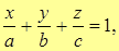 Дома или на п/з получить нормальное уравнение плоскости в отрезках , где a, b, c – длины отрезков, отсекаемых плоскостью на осях 0X, 0Y, 0Z .