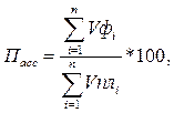 где Пасс – выполнение плана по ассортименту, %; Vфi – фактический объем производства товаров i-ого вида в пределах плана, тыс.руб.; Vплi – плановый объем производства товаров i- ого вида.