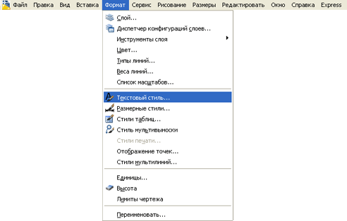 | | Строка меню AutoCAD, подменю "Формат" ("Format").
