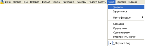 | | Строка меню AutoCAD, подменю "Окно" ("Window").