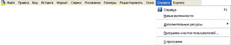 | | Строка меню AutoCAD, подменю "Справка" ("Window").