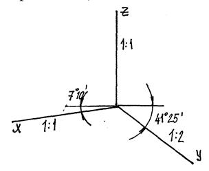 Действительные размеры откладывают только на осях X и Z или на ||-ых им линиях. Размеры по оси Y и ||-ых ей прямых откладывают с коэф-м 0,5.