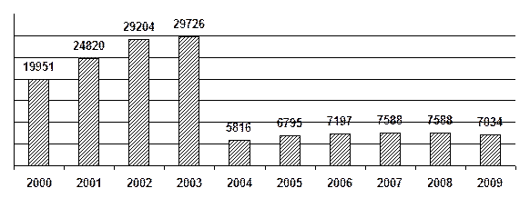 В 2004г наметился спад: изменилась форма подачи; оплата за заявку автором, срок действия патента. Из общего числа заявок на ИС в 2008г.