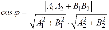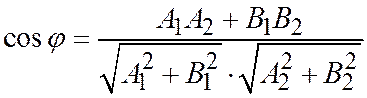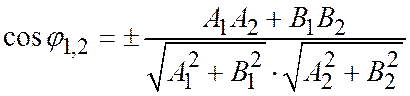 (где для радикалов берутся положительные значения) вычисляется косинус того угла между двумя прямыми
