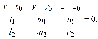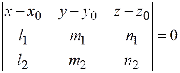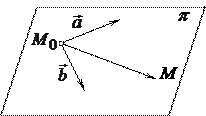 Пусть - произвольная точка пространства. Точка лежит на плоскости тогда и только тогда, когда векторы , и компланарны. Необходимое и достаточное условие компланарности этих векторов имеет вид (§ 36, теорема 6):