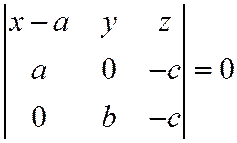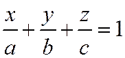 Если плоскость не проходит через начало координат и пересекает все оси общей декартовой системы координат соответственно в точках (а, 0, 0), (0, b, 0), (0, 0, с), то ее уравнение на основании предыдущего параграфа можно записать в виде