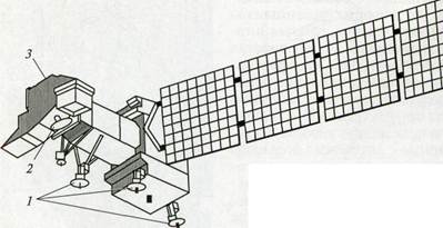 Спутники Ресурс-Ф рассчитаны на детальную фотосъемку местности с делится на предварительную (межотраслевую) и тематическую (отраслевую). Предварительная обработка заключается в приведении материалов космических съемок к виду, наиболее пригодному для последующего тематического анализа и интерпретации отраслевыми потребителями. Она предусматривает устранение неизбежных искажений и помех снимков, обусловленных как техническими причинами, так и природными факторами. Это так называемая коррекция снимков, которая бывает геометрической и радиометрической. Геоинформация, поставляемая системой Ресурс, используется в народнохозяйственных, научных, учебных целях. Наиболее целесообразно применение космических снимков для комплексного изучения и картографирования природных ресурсов, экологического мониторинга и создания ГИС (географических информационных систем) крупных регионов. Космическая американская система ЬапДяа! начала функционировать в 1972 г., ее эксплуатация предусматривала поочередный вывод на орбиту по одному спутнику с расчетным сроком функционирования несколько лет (рис. 1.4). За 16 дней спутник может покрыть сканерной многозональной съемкой всю поверхность Земли. Цифровая информация со спутников по радиоканалам передается на наземные пункты приема, которые оборудованы во Рис. 1.4. Спутник Ьап<1за1-7: