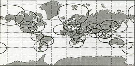 Рис. 1.5. Зоны приема наземными станциями снимков со спутника