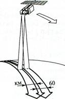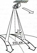 предварительную компьютерную обработку, представляют в цифровом виде. Служба распространения архивированных снимков через сеть Интернет делает их доступными потребителям разных стран. Снимки со спутников Ьапс1$а1, на которых отчетливо изображаются природно-территориальные комплексы — сельскохозяйственные поля, городские населенные пункты, применяются во многих странах мира для геологических, географических, экологических исследований и тематического картографирования. Космическая французская система 8РОТ начала функционировать в 1986 г. Съемка выполняется с высоты 800 км двумя сканерами в надир или в сторону от трассы полета спутника, что позволяет более часто производить повторную съемку (рис. 1.6). Информация, передаваемая по радиоканалам, принимается двумя