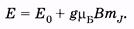 где mБ = e h /(4p m) — магнетон Бора (см. § 13.1), m — масса электрона, mJ — магнитное квантовое число, g — множитель Ланде (g-фактор) (см. § 13.4), для заданного уровня энергии атома он зависит от квантовых чисел L, J, S. Знак «-» в (25.1) обусловлен отрицательным зарядом электрона. Энергия атома в магнитном поле с учетом того, что в отсутствие поля энергия атома равна Е 0, определяется формулой